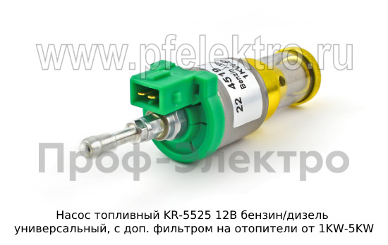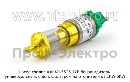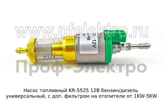 Насос топливный KR-5525 12В бензин/дизель Насос топливный универсальный, с доп. фильтром на отопители от 1KW-5KW (KR)