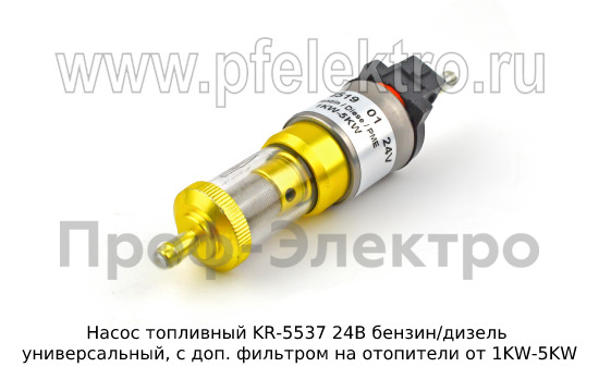 Насос топливный KR-5537 24В бензин/дизель Насос топливный универсальный, с доп. фильтром на отопители от 1KW-5KW (KR)