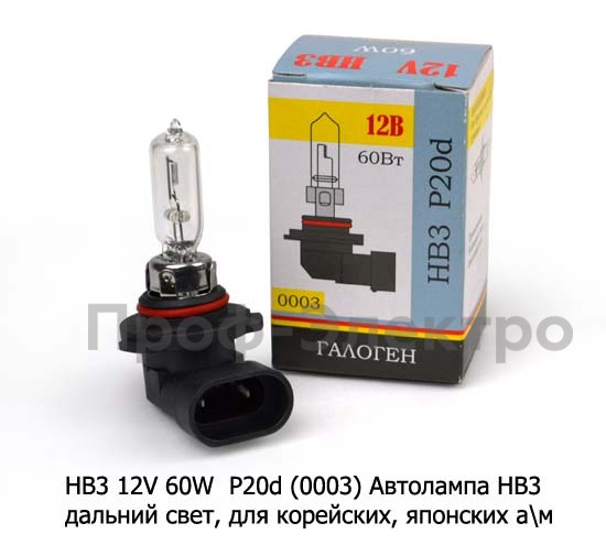 НВ3 12V 60W P20d (0003) Автолампа НВ3 дальний свет, для корейских, японских а\м, все т/с 12В (К)