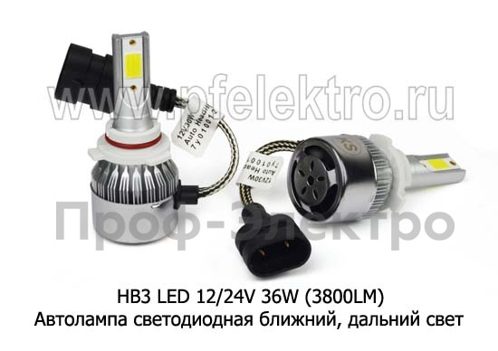 НВ3 LED 12/24V 36W (3800LM) Автолампа светодиодная НВ3 ближний, дальний свет, для корейских, японских а\м, все т/с 12/24В (К)
