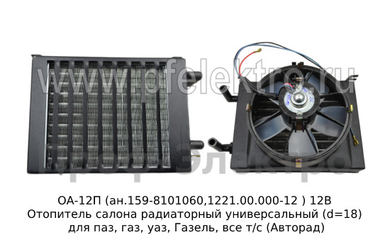 ОА-12П (ан.159-8101060,1221.00.000-12 ) 12В Отопитель салона радиаторный универсальный (d=18) для паз, газ, уаз, Газель, все т/с (Авторад)