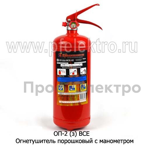 ОП-2 (з) АBCE Огнетушитель порошковый с манометром, масса порошка - 2кг, все т/с (Ярппожаринвест)