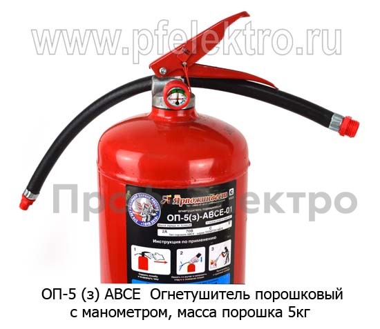 ОП-5 (з) АВСЕ Огнетушитель порошковый с манометром, масса порошка - 5кг, все т/с (Ярппожаринвест)