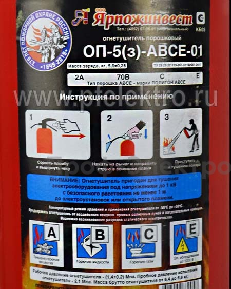 Огнетушитель ОП-5 (з) АВСЕ предназначен для борьбы с огнем классов: