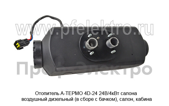 Отопитель 4D-24 A-ТЕРМО - это не тдорогое и эффективное устройство для обогрева салона и кабины автомобиля. Производимый компанией A-ТЕРМО, этот воздушный дизельный отопитель работает при 24В и имеет мощность 4 кВт.