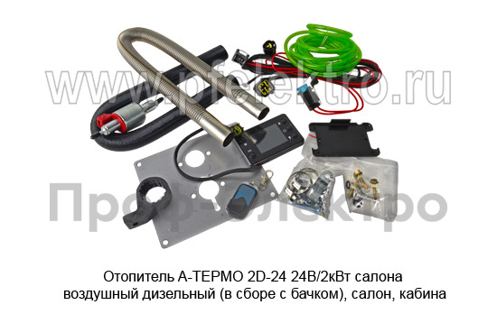 Отопитель 2D-24 A-ТЕРМО - это не дорогое и эффективное устройство для обогрева салона и кабины автомобиля. Производимый компанией A-ТЕРМО, этот воздушный дизельный отопитель работает при 24В и имеет мощность 2 кВт.
