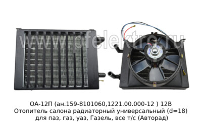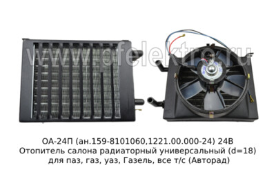 Отопитель салона радиаторный универсальный (d=18) для паз, газ, уаз, Газель, все т/с (Авторад)
