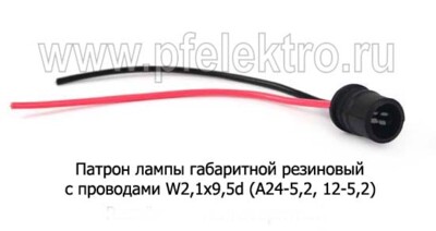 Патрон резиновый с проводами W2,1x9,5d (А24-5,2, 12-5,2) все т/с