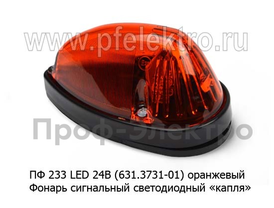 ПФ 233 LED (631.3731-01) оранж (ан.112.99.30) 24В Фонарь сигнальный капля, нового образца, в сборе, маз, супермаз (СКВ)