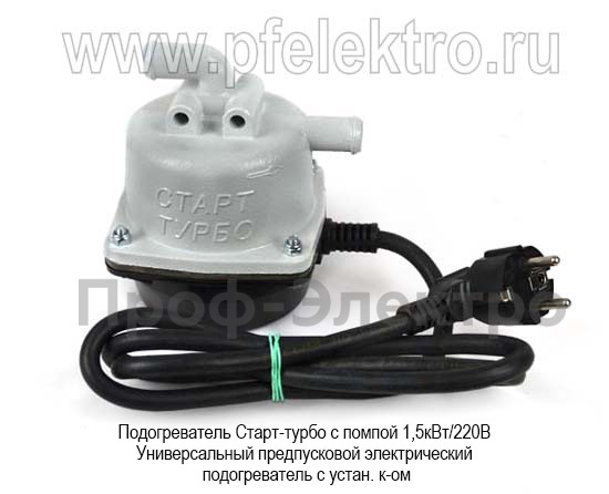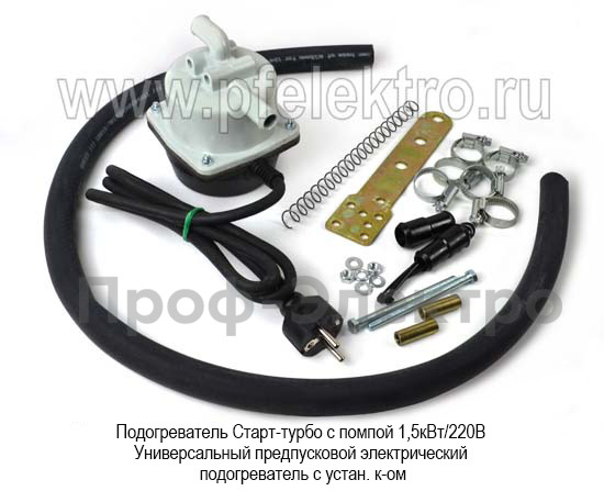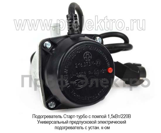 Подогреватель Старт-турбо с помпой 1,5кВт/220В Универсальный предпусковой электрический подогреватель с устан. к-ом, все т/с (Тюмень)