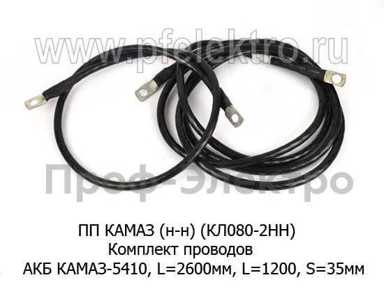 ПП КАМАЗ (н-н) (КЛ080-2НН) Комплект проводов АКБ для камаз-5410, L=2600мм, L=1200, S=35мм, наконечник-наконечник, все т/с (Диалуч)