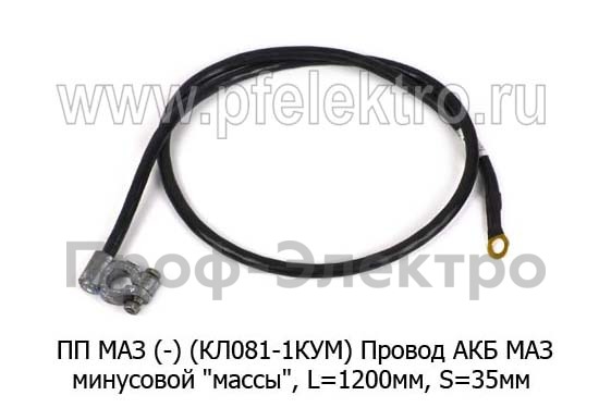 ПП МАЗ (-) (КЛ081-1КУМ) Провод АКБ МАЗ минусовой "массы", L=1200мм, S=35мм, клемма-наконечник, все т/с (Диалуч)