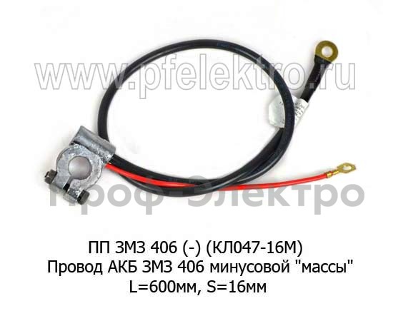 ПП ЗМЗ 406 (-) (КЛ047-16М) Провод АКБ ЗМЗ 406 минусовой "массы", L=600мм, S=16мм, клемма-наконечник, все т/с