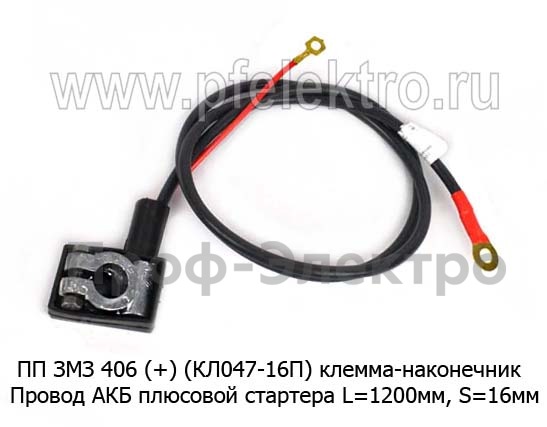 ПП ЗМЗ 406 (+) (КЛ047-16П) Провод АКБ ЗМЗ 406 плюсовой "стартера", L=1200мм, S=16мм, клемма-наконечник, все т/с