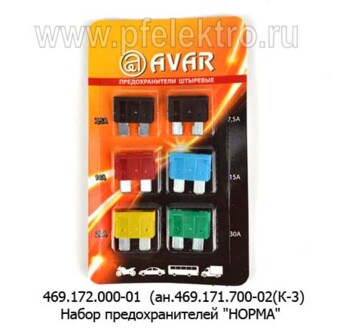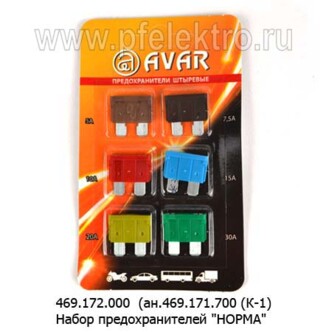 Набор предохранителей "НОРМА" штырьевые, в блистере (5, 7,5, 10, 15, 20, 30А) все т/с (АВАР)