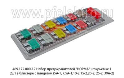 Набор предохранителей "НОРМА" штырьевые, в блистере (7,5А-2, 10,15,20,30А) все т/с (АВАР)
