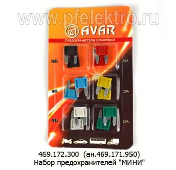 Набор предохранителей "МИНИ" штырьевые (5, 7,5, 10, 15, 20, 25А) х2 в блистере, все т/с (АВАР)