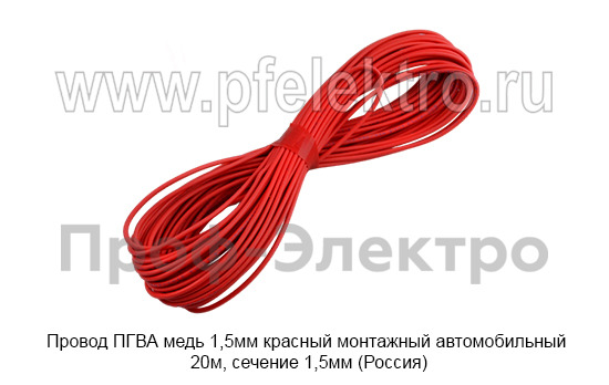 Провод ПГВА медь 1,5мм красный Провод монтажный автомобильный 20м, сечение 1,5мм, все т/с (Россия)