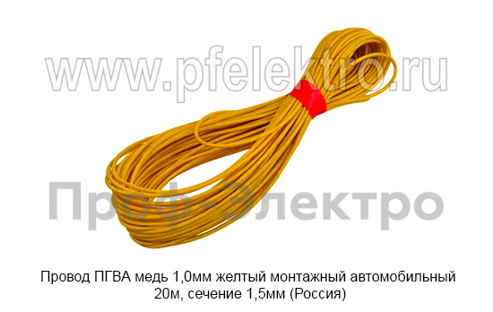Провод ПГВА медь 1,0мм желтый Провод монтажный автомобильный 20м, сечение 1,5мм, все т/с (Россия)