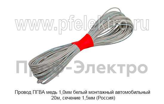 Провод ПГВА медь 1,0мм белый Провод монтажный автомобильный 20м, сечение 1,5мм, все т/с (Россия)