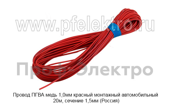 Провод ПГВА медь 1,0мм красный Провод монтажный автомобильный 20м, сечение 1,5мм, все т/с (Россия)