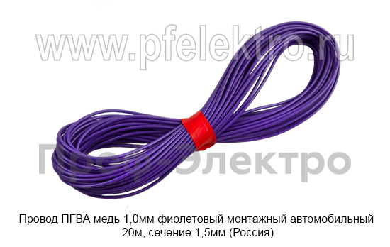 Провод ПГВА медь 1,0мм фиолетовый Провод монтажный автомобильный 20м, сечение 1,5мм, все т/с (Россия)