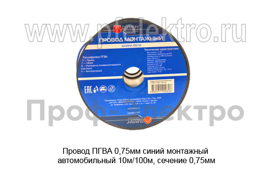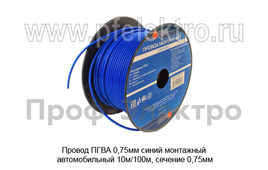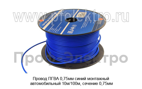 Провод ПГВА 0,75мм синий Провод монтажный автомобильный 10м/100м, сечение 0,75мм, все т/с (ДЛ)