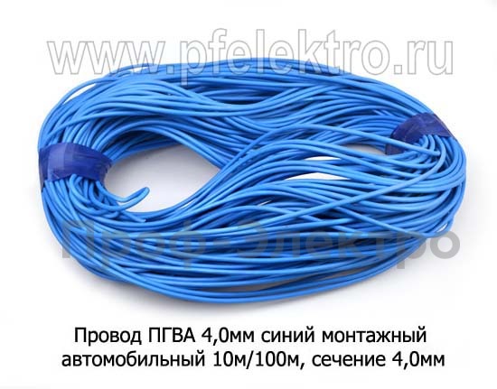 Провод ПГВА 4,0мм синий Провод Медный монтажный автомобильный 10м/100м, сечение 4,0мм, все т/с (Диалуч)
