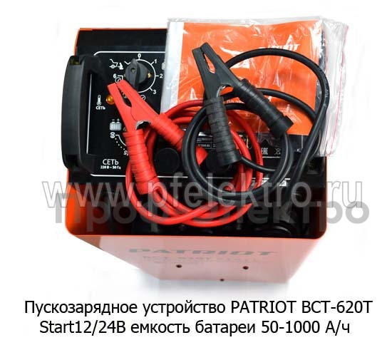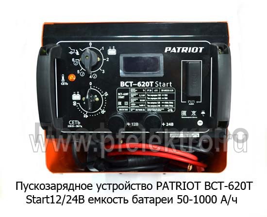 Пускозарядное устройство PATRIOT BCT-620Т Start12/24В Пускозарядное устройство, питание 220В, ёмкость батареи 50-1000 А/ч