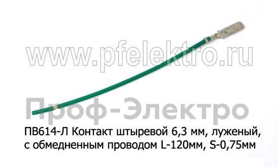 ПВ614- Л Контакт штыревой 6,3 мм, (луженый) с обмедненным проводом L-120мм, S-0,75мм, все т/с