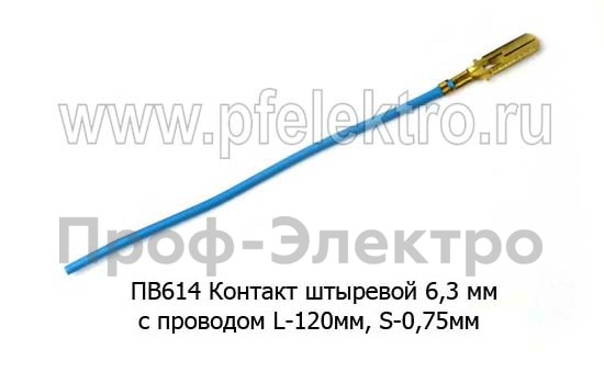 ПВ614 Контакт штыревой 6,3 мм, с проводом L-120мм, S-0,75мм, латунь, все т/с (Диалуч)