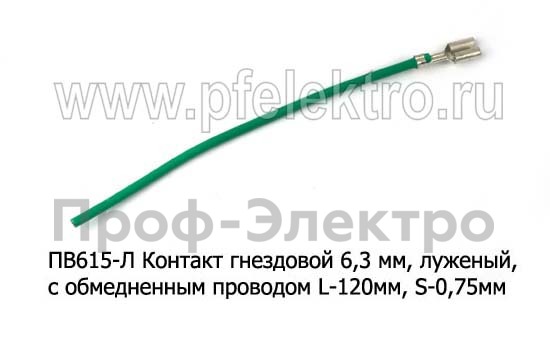 ПВ615- Л Контакт гнездовой 6,3 мм, (луженый) с обмедненным проводом L-120мм, S-0,75мм, все т/с