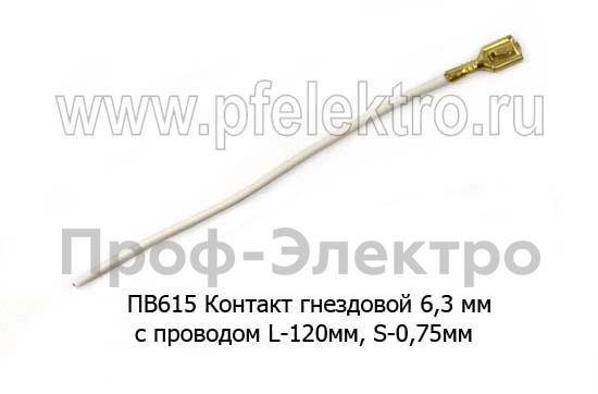 ПВ615 Контакт гнездовой 6.3 мм, с проводом L-120мм, S-0,75мм, латунь все т/с (Диалуч)