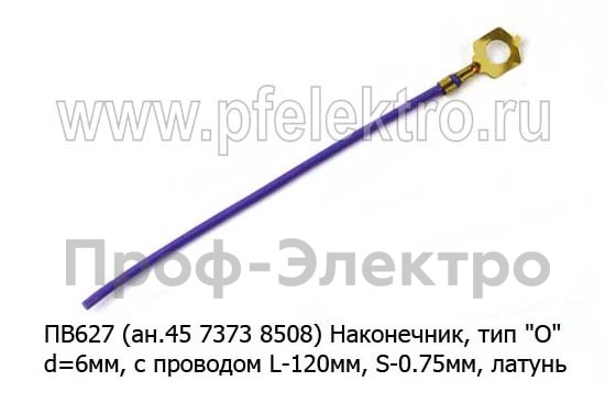 ПВ627 (ан.45 7373 8508) Наконечник, тип "О", d=6,0 мм, с проводом L-120мм, S-0,75мм, латунь, все т/с (Диалуч)