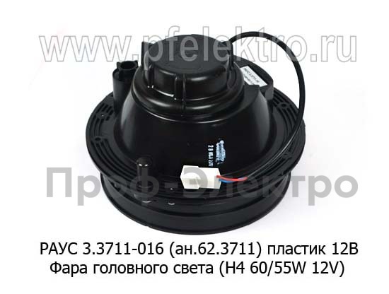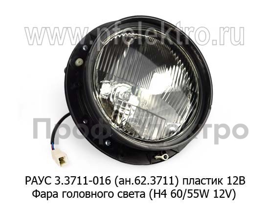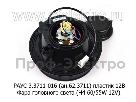 РАУС 3.3711-016 (ан.62.3711) пласт. 12В Фара головного света (H4 60/55W 12V) под гидро- или электрокорректор, без обода для уаз, ваз (Бел-Фер)