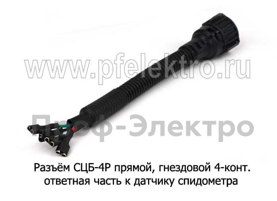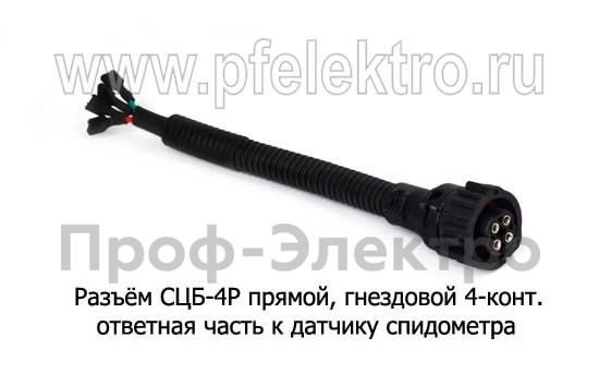 Разъём СЦБ-4Р (Прямой), гнездовой 4-конт. (КЛИ104-РП) Ответная часть с проводами к датчику спидометра (4202, 4402 4222 ) (ТрАС)