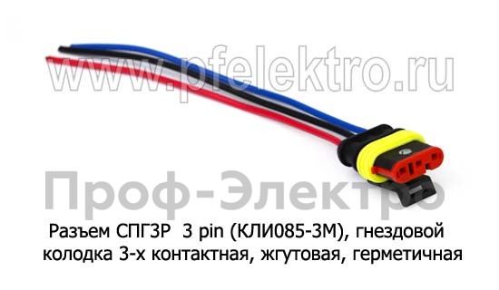 Разъем СПГ3Р 3 pin (КЛИ085-3М), гнездовой колодка 3-х контактная, жгутовая, герметичная, в сборе с проводами ваз, газ