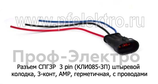 Разъем СПГ3Р 3 pin (КЛИ085-3П), штыревой колодка, 3-х контактная, герметичная, АМР, в сборе с проводами