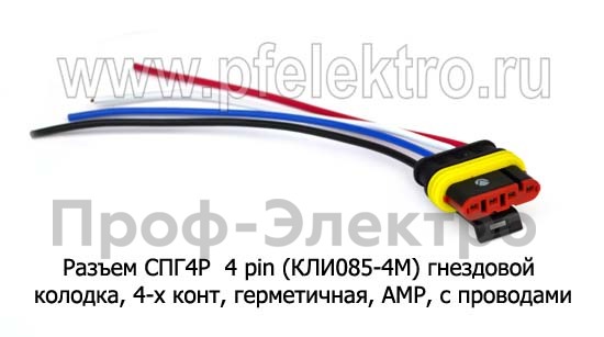 Разъем СПГ4Р 4 pin (КЛИ085-4М), гнездовой колодка, 4-х контактная, герметичная, АМР, в сборе с проводами