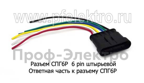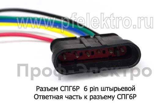 Разъем СПГ6Р 6 pin, штыревой Ответная часть к разъему СПГ6Р в сборе с проводами