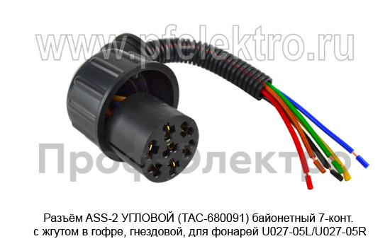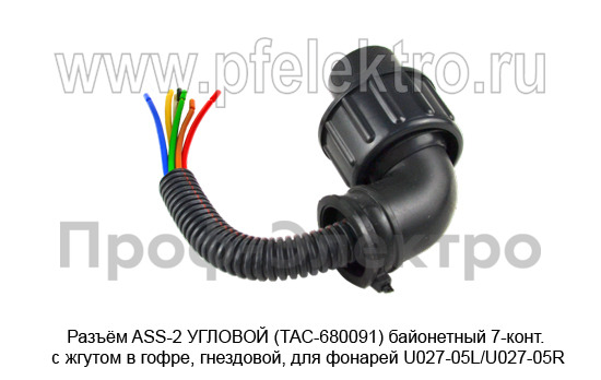 Разъём ASS-2 УГЛОВОЙ (ТАС-680091) байонетный 7-конт. Разъём с жгутом в гофре, гнездовой, для фонарей U027-05L/U027-05R (ТАС)