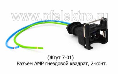 Разъём 7-01 AMP (КЛИ007/282189-1) гнездовой квадрат 2-конт (ответная часть 10-01)