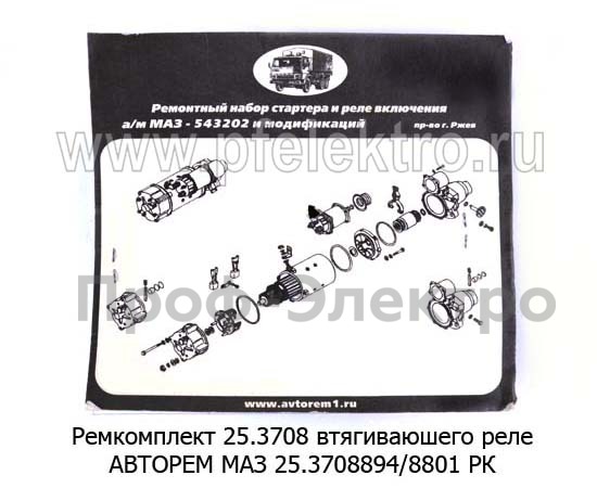 Ремкомплект 25.3708 втягиваюшего реле АВТОРЕМ маз 25.3708894/8801 РК (крышка+ болты+диск)