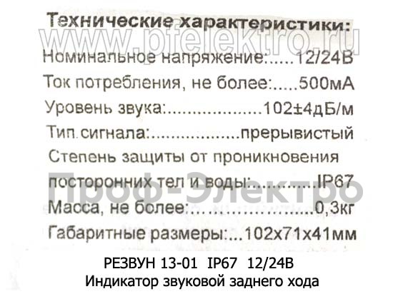РЕЗВУН 13-01/11 IP67 12/24В Индикатор звуковой заднего хода, все т/с (Энергомаш)