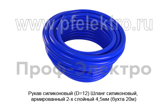 Рукав силиконовый (D=12) - это гибкий и прочный шланг из силикона, который имеет диаметр 12 мм. Шланг состоит из двух слоев, армированных для дополнительной прочности. Толщина стенок составляет 4,5 мм, а общая длина шланга - 20 метров.