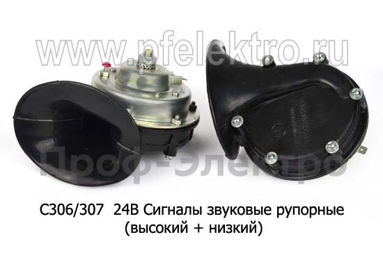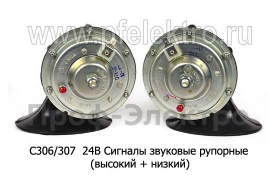 С306/307 24В Сигналы звуковые рупорные (выс+низ) для камаз, урал, все т/с 24В (ЛЭТЗ)