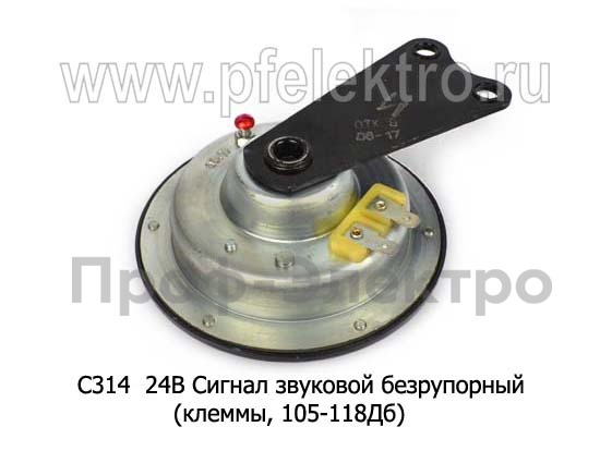 С314 24В Сигнал звуковой безрупорный (клеммы, 105-118Дб) для камаз, урал, газ, тракторы (ЛЭТЗ)