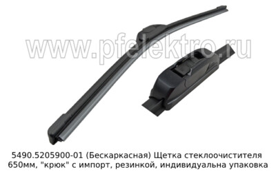 Щетка стеклоочистителя 650мм, "крюк" с импорт, резинкой, индивидуальна упаковка