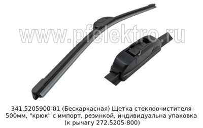 Щетка стеклоочистителя 500мм, "крюк" с импорт, резинкой, индивидуальна упаковка (к рычагу 272.5205-800)