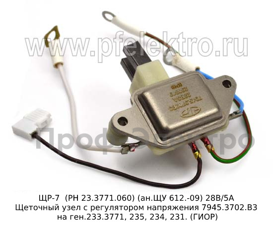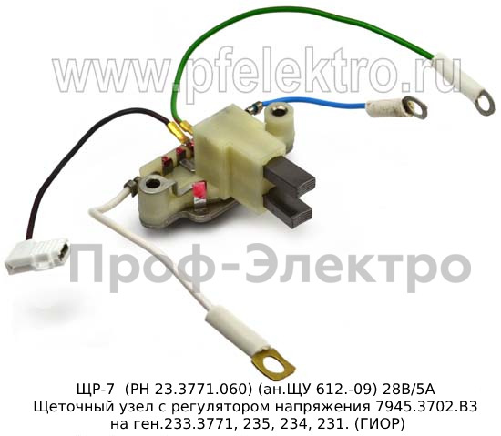 ЩР-7 (7945.3702.В3) 28В/5А ан.ЩУ 612.-09, РН 23.3771.060 Щеточный узел с регулятором напряжения на ген.233.3771, 235, 234, 231.. (ГИОР)